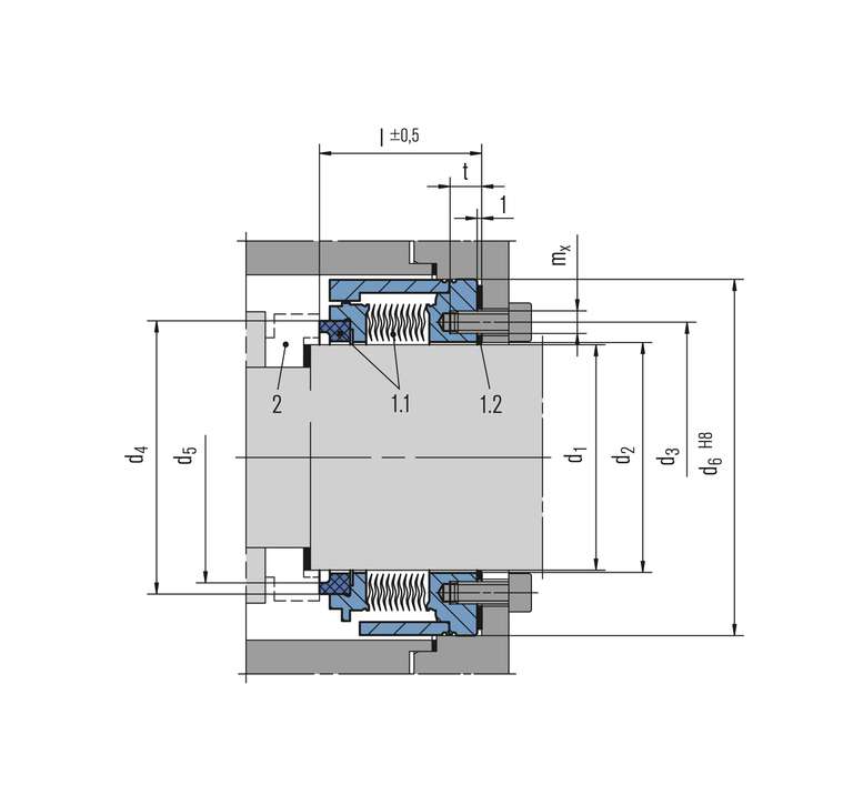 Shaft diameter: d1 = 16 ... 100 mm (0.63" ... 4"), (>100 mm on request)