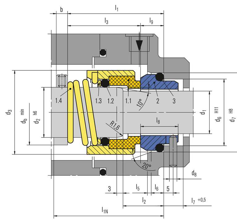 Dimensions, items and descriptions as for H12N, but with shrink-fitted seal face (Q12), item no. 1.1.